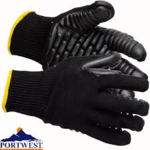 Specially designed to reduce the effects of impact and vibration. Excellent levels of comfort and dexterity when using powertools, jack hammers, concrete breakers etc. 10 gauge.•Portwest Workwear. •Anti Vibration Glove - A790. •Reduces effects of impact & vibration. •High levels of comfort & dexterity. •Certified to EN420. •EN388. •EN10819. •Fabric: 50% Cotton, 45% Nylon, 5% Rubber yarn. •Sizes: Medium to XLarge. •Colours: Black.