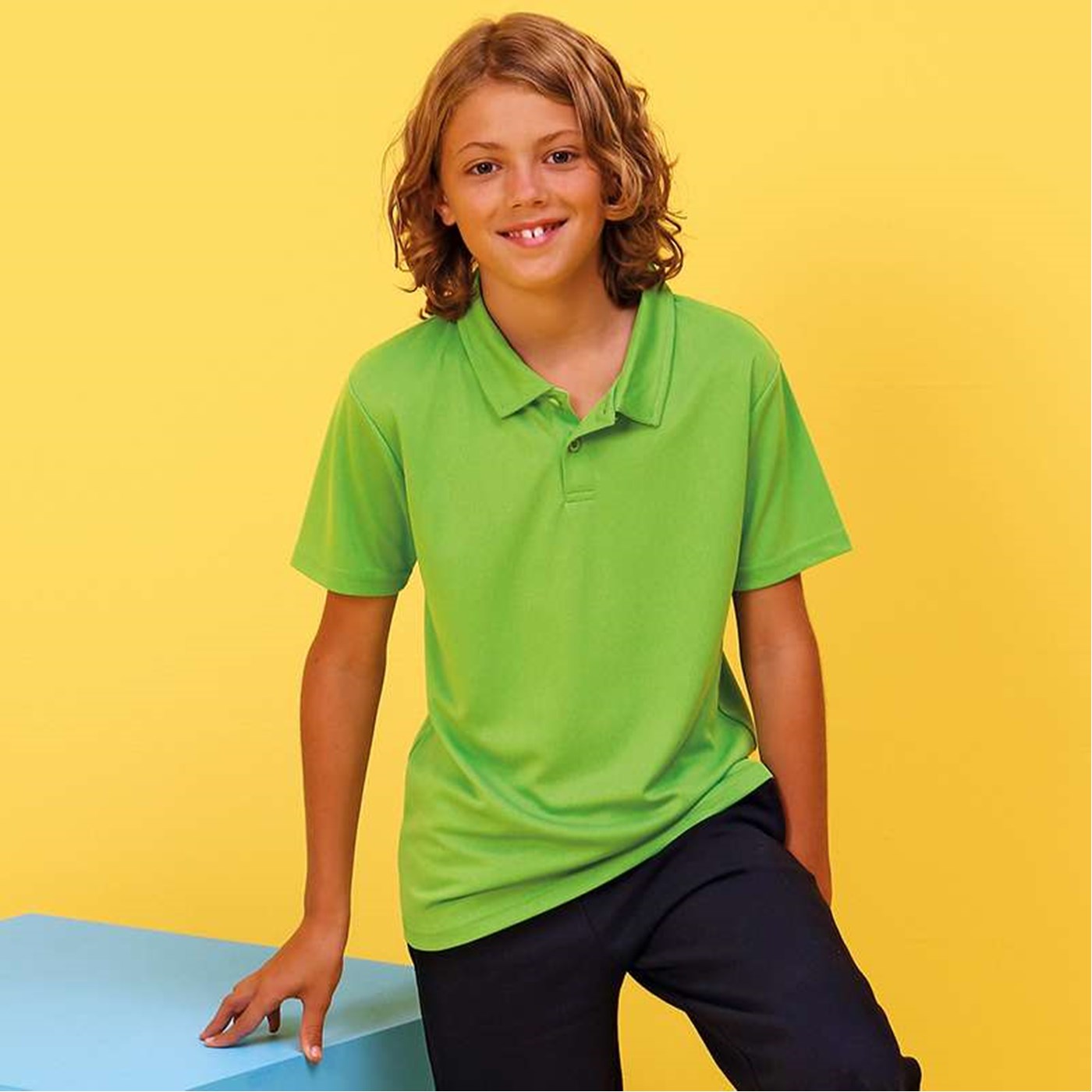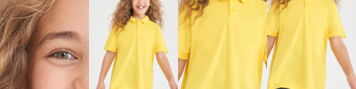 10 great colours. Set in sleeve design with 3 button placket. Self coloured buttons. AWDis's own Neoteric TM textured fabric with inherent wickability. Self Fabric Taped Back Neck. Twin needle stitching detail. Self fabric collar and cuffs. Printed back neck. Worldwide Responsible Accredited Production (WRAP) certified production. Size (Age) XS - 3/4, S - 5/6, M - 7/8, L - 9/11, XL - 12/13