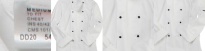- Quality lightweight long sleeve chef's jacket with 10 removable black plastic studs