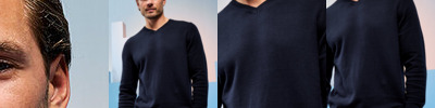 V-neck style jumper. Patch on the inside reverse neck for a contrast effect. Decorative tuck stitching. Ribbed knit on the neckline, cuffs and hem. Washing Instructions Domestic wash at 40c