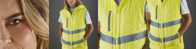 A smart-looking hi-vis gilet blended with safety, comfort, quality and style. Soft touch, nicely quilted and showerproof. Hi-vis Yellow Orange compliant to EN ISO 20471: 2013 Class 2; Orange also compliant to GO/RT3279 for railway industry. Two 5cm width “V” shape reflective tapes on the body. Fleece lined hood with elastication, both the chest pocket two hand-warmer inset pockets come with zip closure. One large patch pocket on the inside fixed fleece lining. Additional reflective piping around the elasticated arm holes and on the bottom of the body offering extra visibility and cool look in the dark. Great colour choices for both work and leisure wearing. Inner bottom concealed zip decoration access.Washing InstructionsMaximum washing temperature 40ºC. Normal process wash as synthetics. No bleaching allowed. Do not iron. Do not tumble dry or wring. Do not dry clean, cold rinse short spin. No professional dry cleaning in perchloroethylene or hydrocarbons. Do not wash in biological powder. 25 max. wash cycle.