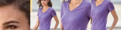 Classic contoured silhouette with side seam. Mitered V-Neck. Display Tape and seamed collarette. TearAway label.Oeko-Tex® Standard 100*.