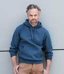 Brushed back fleece. 100% cotton outer layer. Drop shoulder style. Straight modern cut. Double layer hood with flat chunky drawcord. Herringbone taped neck.