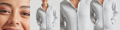 Cadet collar with single jersey back neck tape. Covered zip for enhanced printability. Two welt front pockets. Waist and cuff in cotton/Elastane rib.