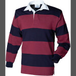 Made from high quality heavyweight Jersey, the ever popular striped panel rugby shirt has a traditional woven collar and ribbed cuffs. With taped shoulders and side vents, it's made to last. Carefully chosen fabrics and clever detailing, characteristic of Front Row and Co. It also has ample space to display a bold slogan, logo or crest.