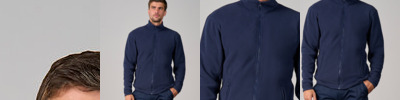Warm-backed woven Softshell XPT waterproof and breathable 3-layer membrane fabric. Fully printable outer fabric. Wind-resistant membrane fabric. 2 zipped lower pockets and 1 zipped chest pocket
