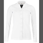 Airey piqué construction. Feminine v-neck design. Nimbus logo embroidery at right sleeve placket. Logo buttons. Discrete woven badge at inside placket. Fabric that let you move around, stay comfortable and feel cool all day long. Feminine fit. Feminine styled button fastening.