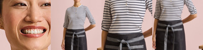 Mid-length denim waist apron with two large metal eyelets that secure the waist ties. Large centre pocket measuring 36cm wide with combined pen pocket. Contrast trim on pocket and ties gives a two-tone denim effect. 50cm long by 70cm wide. Washing Instructions Domestic wash 60°c. Industrial wash 85°c.