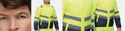 Waterproof and breathable Isotex 10,000 polyester 300D fabric with taped seams. Conforms to EN ISO 20471:2013 +A1:2016 Class 2 (orange also RIS-3279/TOM). Conforms to EN343:2003 A1:2007 Class 3:3 Thermoguard insulation.