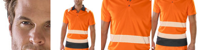 Top stitched shoulder and sleeve detail. Easy-stretch, printed safety bands. Contrast black panel and collar. 3-button placket with spare button. Stretch ribbed collar. End of life recyclable: ideal for Corporate Sustainable Responsibility. Innovative dark panel design to mask grime. Made from highest quality sustainable yarns using 100% post-consumer PET recycled plastic bottles as an equivalent to conventional yarns. Biodegradable packaging and recycled cartons. EN ISO 20471: 2013 + A1:2016 Class 2 / Ris-3279-Tom Class 2 (orange only). Oeko-Tex certified.