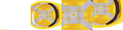- Suspension harness with foam sweatband, rain gutter and ear protector slots.