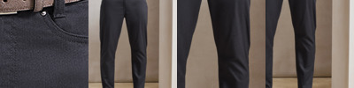Easy care fabric. Stretch fabric for ease of movement. Belt loops. YKK zip fly with button over. Two side pockets with rivet detail. Rear patch pockets. Domestic wash 60°C.