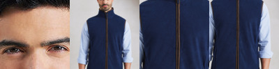 Sleeveless gilet with contrast trim detail. High-neck rounded collar, leading into a two-way zipper. Two zipped external pockets and two internal open pockets. Front and back panel detail. Contrast fabric hook on back of collar for hanging up. WRAP certified. SEDEX certified. BSCI certified.
