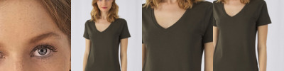 100% Organic Cotton V-neck TEE by B&C fits perfectly, featuring a V-neck, short sleeves and side seams. This luxury women's T-shirt is made of superior combed ring-spun organic cotton, with a very soft hand feel. Its smooth and even surface provides the best blank canvas for printing . Thanks to "B&C No Label" solution, it's perfect for rebranding. Offered in a wide variety of colours at a very affordable price. DUO Concept: a dedicated men's style for the perfect fit. Stripped back to the essentials, this short-sleeved T-shirt is clean and minimalistic for any occasion. For long-lasting comfort, the neck seams are reinforced with soft binding. Side seams ensure the best fit and a feminine silhouette. Cut in an easy, medium fit, it's the kind of tee you'll dress up and down. Thin medium deep V collar rib for modern, up to date appearance. For long-lasting comfort, the neck seams are reinforced with soft binding. Minimalist cut and detailing suitable for many uses and any end user requirements. The V T-shirt is made from combed organic soft jersey with a luxurious hand feel and long-lasting comfort.Extra soft and smooth hand feel thanks to the ring-spun cotton. Combed yarn ensures a finer, smoother, stronger, more compact, more uniform and cleaner fabric. Comfortable and snug to wear thanks to the organic thin yarn and dense fabric construction. Very smooth and even surface allows bright and crisp printing results. "B&C No Label" system for perfect rebranding. Tested and approved for all standard printing techniques applicable on cotton.