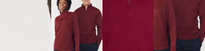 Contrast upper chest and underarm panels. Quarter zip. Side panels. Reverse nylon zips centre front and side pockets. 1x1 ribbed cuff sleeve. Semi-automatic zip pull and slider. . BSCI certified.