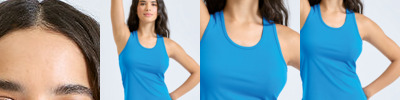 Scoop neck. Racerback. Curved hem. Recycled polyester. We recommend using block out vinyl and inks.Product contains no branded neck or waist label. Removable Kimble or looped garment tags. Inner seam label holds important product information on one label with a second label containing brand information which can be cut-away.