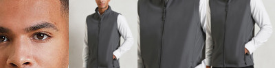 100% nylon pongee in a water-repellent fabric. Quilted polyester padding for puffer effect. Smooth area on chest and across back for decoration. Plain side panels. Full-length front zipper and 2 hidden side pocket with non slip pullers. 2 internal deep pockets. Binding on armhole. Henbury cut out label.