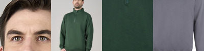 YKK zip and pull. Twin-needle stitching at arm, cuff and hem. 2x1 rib on cuff and hem. Heavier-weight fabric. Modern yet comfortable fit. Half-zip neck. Brushed inner fleece. Certified WRAP and SEDEX.