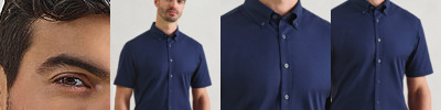 Short sleeve shirt in mercerised cotton, which enhances its overall look, feel and performance. Contains organic cotton and elastane for stretch and shape. Button-down collar. Self-coloured buttons with pearlised buttons on white. Back yoke for fit over the shoulders and back pleats to assist the shape. Curved hemline.
