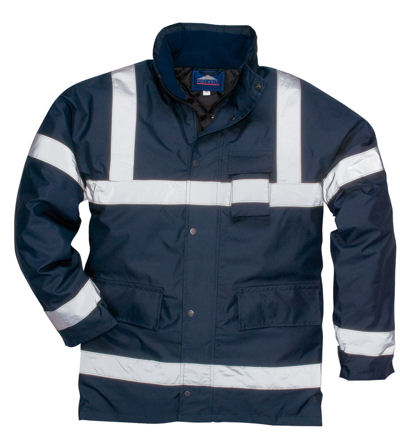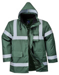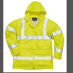 EN343 CLASS 3:1 EN342 100% POLYESTER 300D OXFORD WEAVE. PU COATED. 190gsm 2 LARGE FRONT POCKETS. MOBILE PHONE POCKET. DRAW CORD HOOD. 2 HI-VIS TAPE ROUND BODY. 2 BAND OVER SHOULDERS. 2 BAND ROUND ARMS.