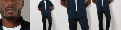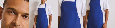 Halter with invisible adjuster Full size apron Bleach resistant vat dyed fabric High spec fabric Anti-tangle ties Suitable for industrial laundering at 70º