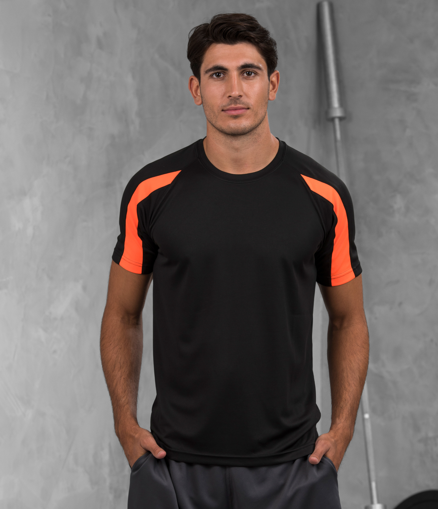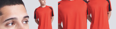 Contrast inserts on front and back sleeves. Crew neck. Raglan sleeve design. Just Cool’s own Neoteric ™textured fabric with inherent wickability. Self fabric taped back neck. Self fabric collar. Printed back neck. Worldwide Responsible Accredited Production (WRAP) certified.